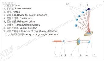 Принцип: Свет — это электромагнитная волна. Когда свет встречается с частицами на своем пути, взаимодействие между светом и частицами приводит к отклонениям части света, что называется светорассеянием. Чем больше угол рассеяния, тем меньше размер частиц, чем меньше угол рассеяния, тем больше размер частиц. Приборы анализатора частиц будут анализировать распределение частиц в соответствии с этим физическим характером световой волны.